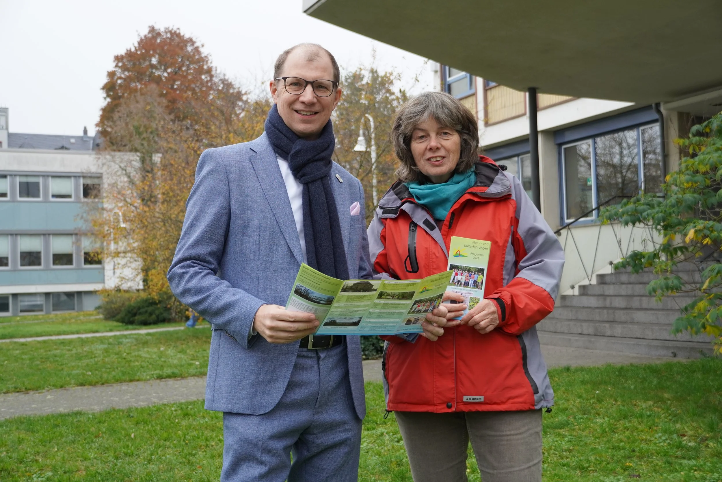 Seit 2007 hat es sich der Verein der Wetterauer Natur- und Kulturführer zum Ziel gemacht, die Vielfalt der Region für alle Generationen erlebbar zu machen. Jedes Jahr bieten die rund 30 Gästeführerinnen und Gästeführer spannende Touren durch die Wetterau, den Vogelsberg und den Taunus an. Das Jahresprogramm 2026 haben nun Landrat Jan Weckler und Vereinsvorsitzende Annette Miksch vorgestellt.