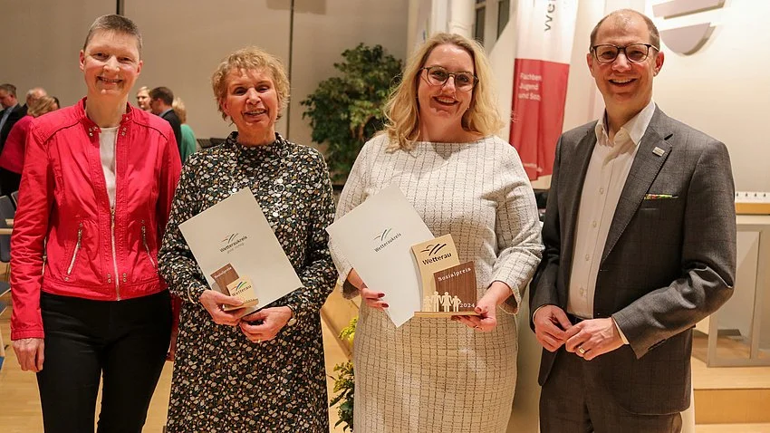 In feierlichem Rahmen und vor rund 80 Gästen wurde im Plenarsaal des Friedberger Kreishauses der Wetterauer Sozialpreis 2024 verliehen. Ausgezeichnet wurde der Verein Atemzeit e. V. aus Wölfersheim für seine herausragende Arbeit mit lebensbedrohlich erkrankten Kindern. Eine Belobigung erhielt die Helfer-Initiative Rosbach für ihr langjähriges Engagement in der Unterstützung von Familien, Senioren und Menschen mit Beeinträchtigungen.