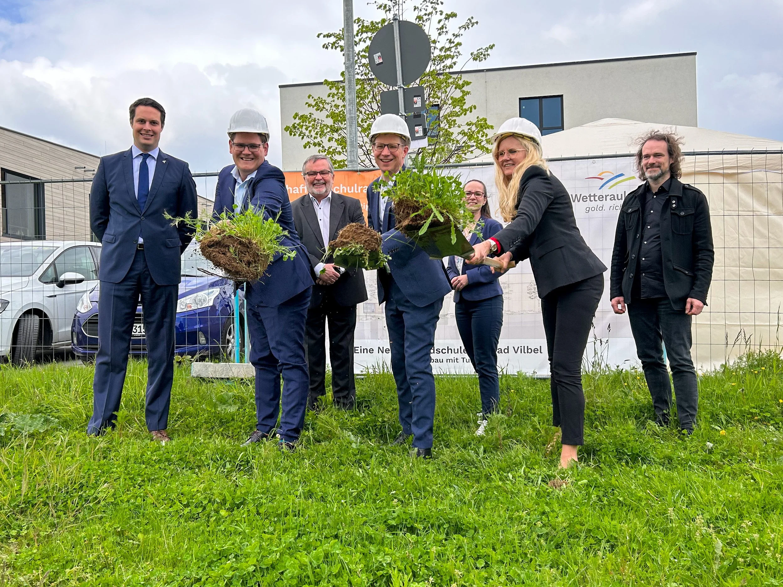 Es ist das größte und kostenintensivste Schulbauprojekt, das der Wetteraukreis als Schulträger derzeit umsetzt: Im Bad Vilbeler Neubaugebiet Quellepark entsteht für rund 27 Millionen Euro eine neue Grundschule. Gemeinsam haben Landrat Jan Weckler, Bad Vilbels Bürgermeister Sebastian Wysocki und Beate Rebstock, stellvertretende Leiterin des Staatlichen Schulamtes, nun den symbolischen Startschuss für den Bau gegeben.
